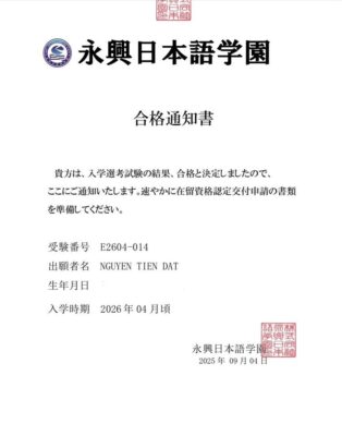 Khi đậu phỏng vấn, hồ sơ sẽ được gửi lên Cục Xuất Nhập Cảnh Nhật Bản, tiến hành bước xin Tư cách lưu trú (COE).